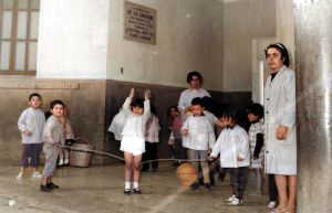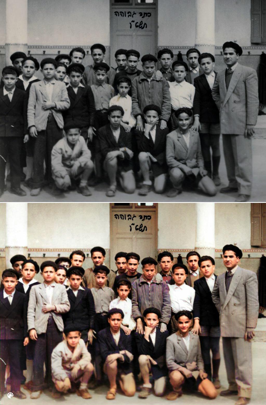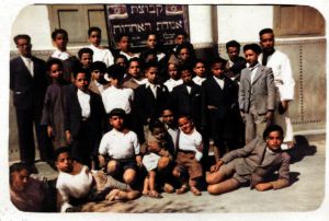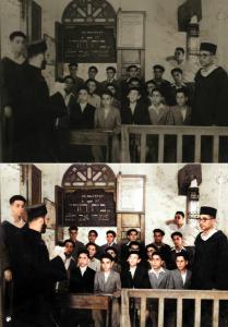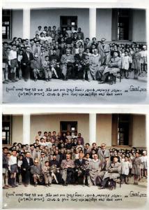 תמונת מחזור כוללת , אם הבנים צפרו 1955 , נשיאות, מנהלים, מורים ותלמידים. מימין לשמאל : י. מגנדה, ע.קוסטנבוס, שלמה חותא, יעקב טובלי (נשיא אם הבנים) , הרב זאב גולד, הרב דוד עובדיה (ממונה על החינוך), רחמים טובלי (נשיא הקהילה) , הרב בניזרי (מנהל ביה"ס), ש.שמידט , מורים ותלמידים.