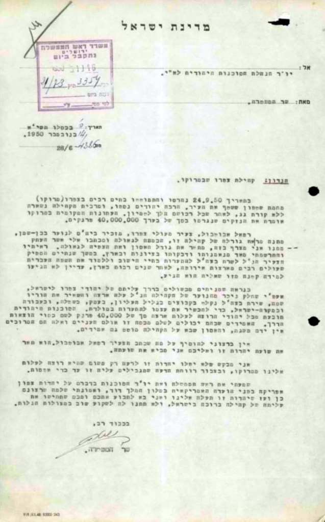 רפי, שהיה מעולי צפרו, פונה מעומק לבו בפנייה נרגשת, ב'כיליון עיניים', במכתבו לשר המשטרה בכור שטרית, בבקשה לסייע למשפחות של העיר צפרו, ולהעלותם ארצה לחיות כאן בצורה טובה במקום שיישארו בגלות. בעקבות פנייתו של רפי, פנה שר המשטרה לראש הממשלה וליו"ר הסוכנות היהודית בבקשה לסיוע בהעלאת יהודי צפרו לארץ"